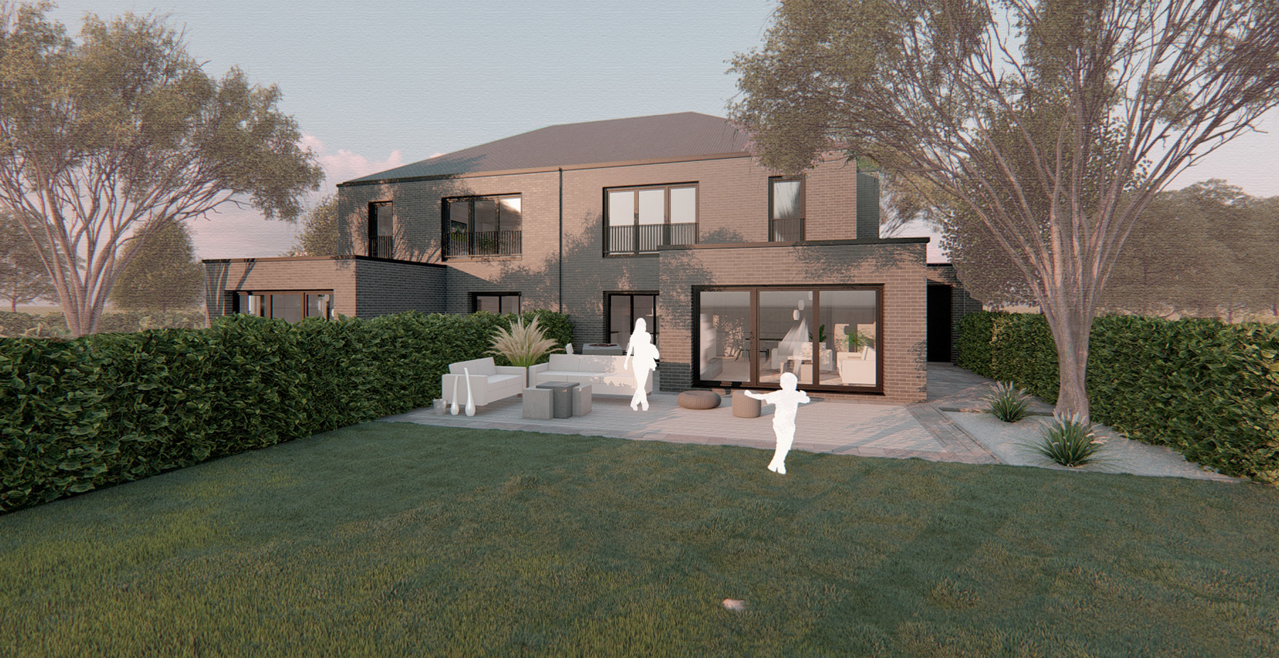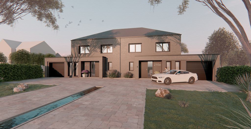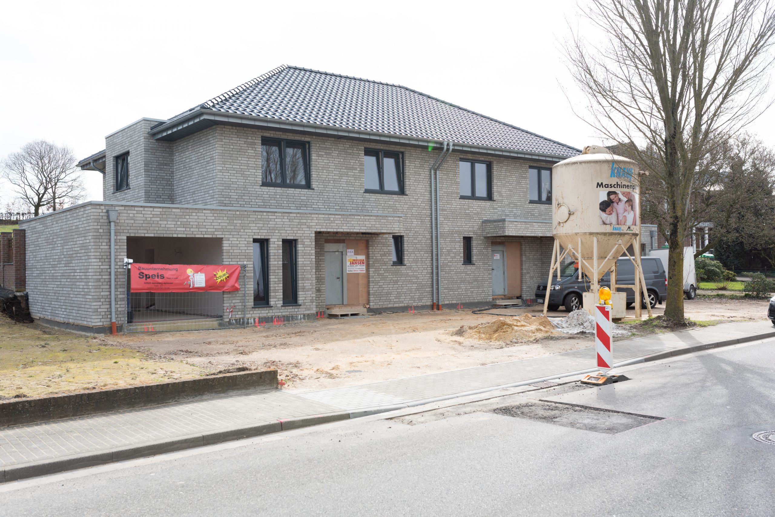 Im Stadtgebiet Heinsberg sollte das brachliegende sehr breite Grundstück mit einem modernen Doppelhaus bestückt werden. Die beiden sehr identischen Grundrisse mit jeweils 140 qm werden äußerlich mit einem zeitlosen Klinker, sowie das Dach ohne Überstand ausgeführt. Die Rahmung der Garage beherbergt gleichzeitig die Hauseingänge. Baustart war im Frühjahr 2020 geplant. Mittlerweile steht zum Großteil der Rohbau und zeitnah kann mit dem Innenausbau begonnen werden.