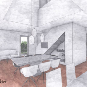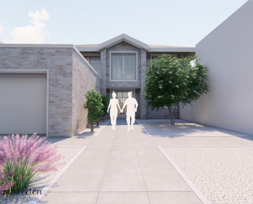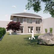 Eine alte Scheune soll für das neue Einfamilienhaus in Heinsberg weichen. Der Wunsch der Bauherrschaft nach einem Haus im „Landhausstil“ wurde entsprochen. Eine einladende Wirkung mittels langer Zuwegung sorgt für zusätzliches Ambiente. Das Haus mit weitem Garten soll zukünftig 140m² Wohnfläche erhalten und Familie mit Hund glücklich machen.