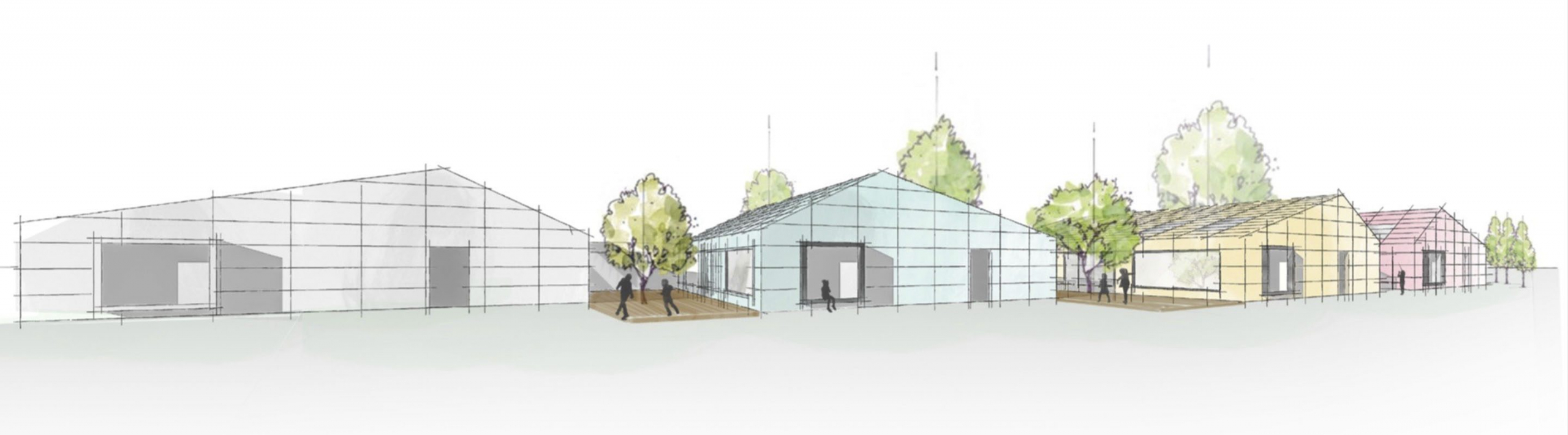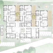Im nordfriesischen Husum entsteht eine Kindertagesstätte, welche auf dem ausgeschriebenen 4000 Quadratmeter großem Grundstück zwischen Klinikum und Kreisverwaltung Platz für 120 Kinder zwischen 1 & 6 Jahren bietet. Konzipiert nach den Bedürfnissen unserer heranwachsenden Zukunft, basiert das Konzept auf Grundlage eines Kinderdorfes. Bestehend aus vier miteinander verschmolzenen Baukörpern entsteht eine anschauliche und leicht verständlich Konstellation, die vom Maßstab und dem Erscheindungsbild an seine Nutzer ausgerichtet ist. Durch die Anordnung der freistehenden Häuser entsteht für die Kinder ein eigenes Dorf, das Spieldorf, was die markante Entwurfsidee stützt.